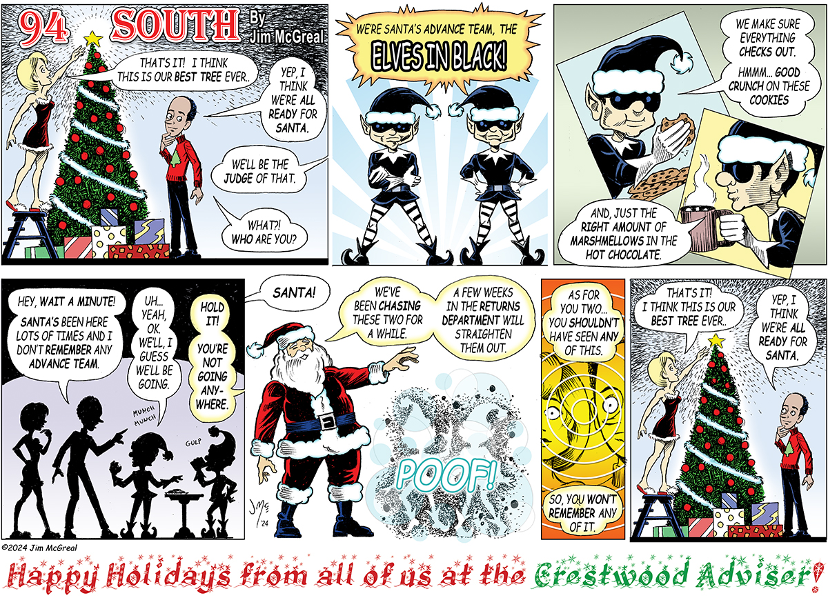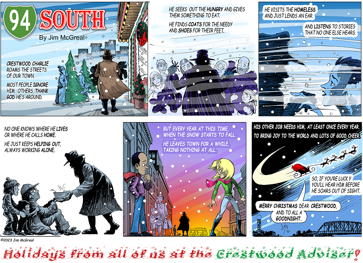 The "Crestwood Canary" storyline is a comics noir adventure featuring our characters from the 94 South comic strip which appears monthly in The Crestwood Adviser.