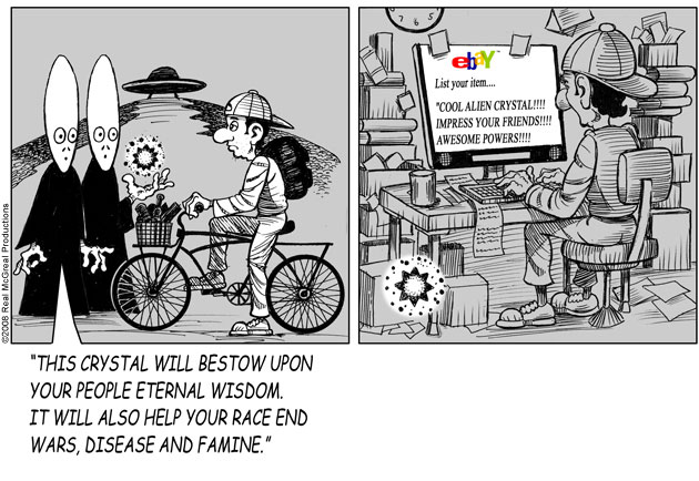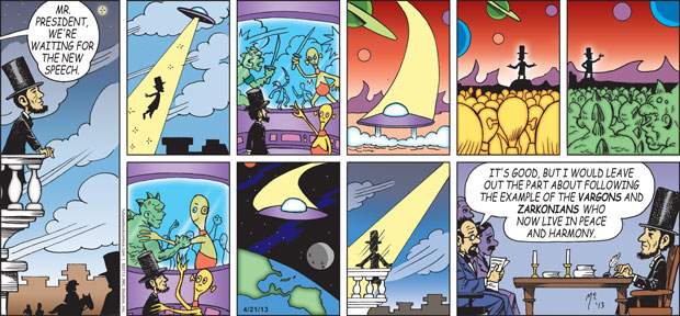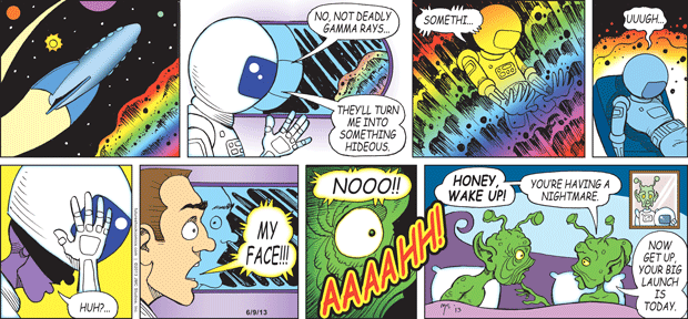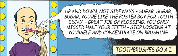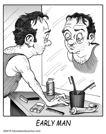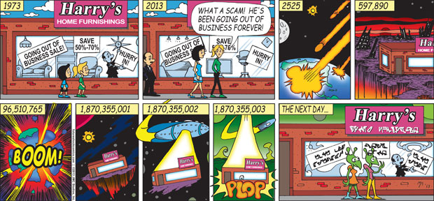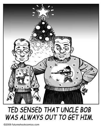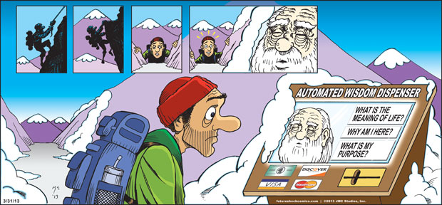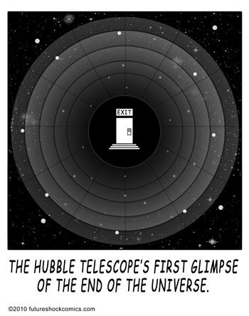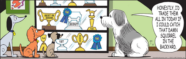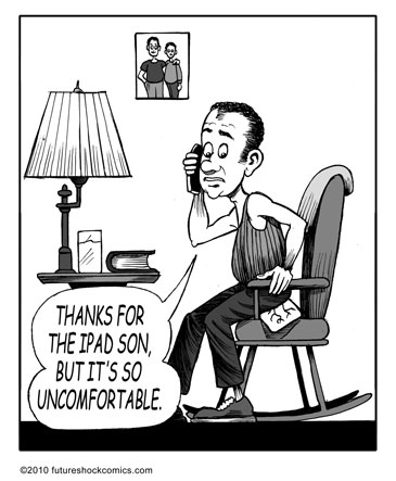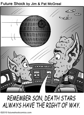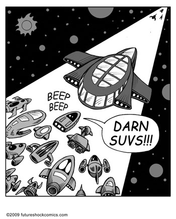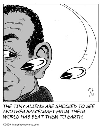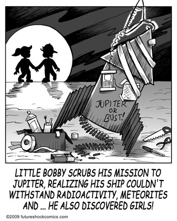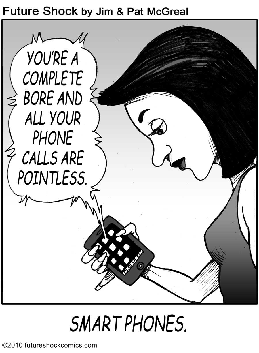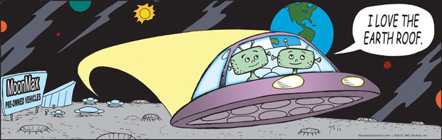 “Future Shock knocks the rock. (The one others call Earth.) Someone tell our youth they don’t need TV, ipods, Wii or apps that produce jokes. They need the newspaper’s comics page with Future Shock.”