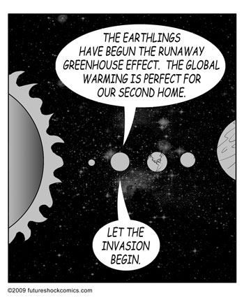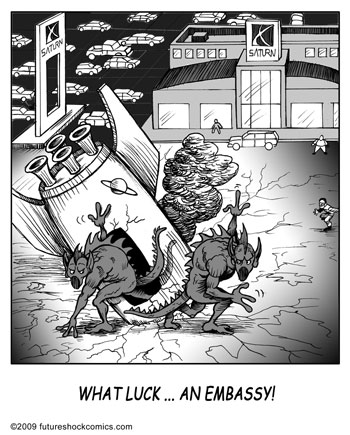 “Future Shock takes everyday insanities like iPhones, traffic jams and those all-too-frequent alien invasions, and spins them into intergalactic fun. A true original!”